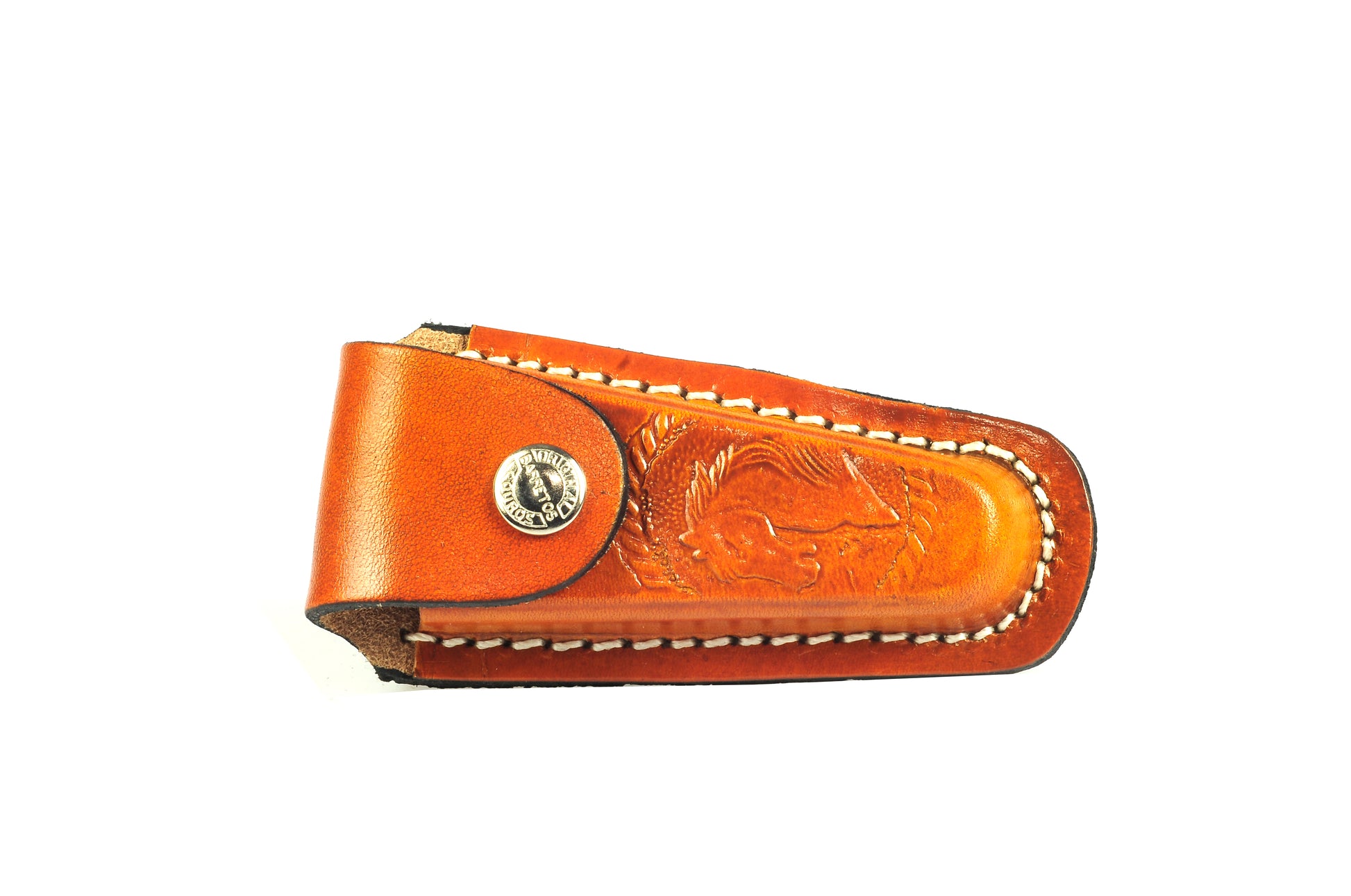 Large Natural Leather Pocket Knife Sheath – Practical, Safe, and Durable This sheath was designed for those seeking practicality and safety when carrying their pocket knife. Its large size makes it ideal for knives of various models and sizes, ensuring a perfect fit and protection against damage. Made of high-quality natural leather, it combines strength, elegance, and functionality, making it the perfect choice for those who appreciate durable and stylish accessories. Its belt loop offers the convenience of easily attaching it to your clothing or equipment, allowing for quick and easy transport, whether in the field, on the farm, or during outdoor activities. Natural leather ensures exceptional durability and provides a classic and sophisticated look.